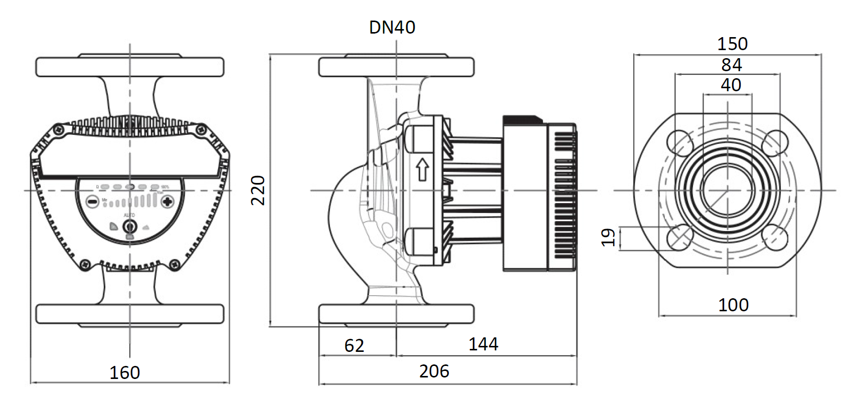 | Размер напорного патрубка | DN40 |