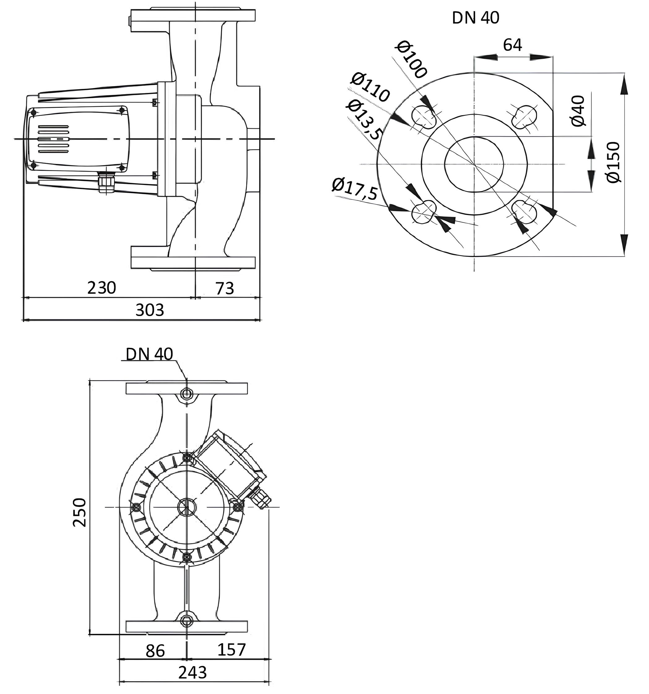 | Размер напорного патрубка | DN 40 |